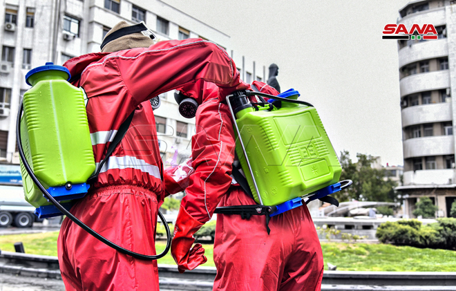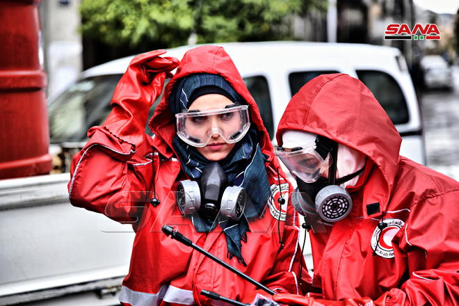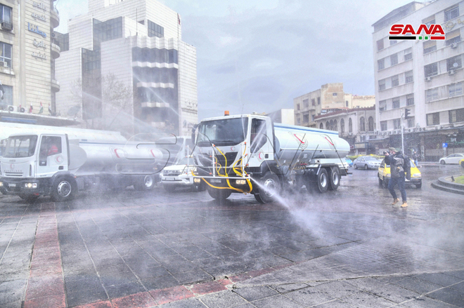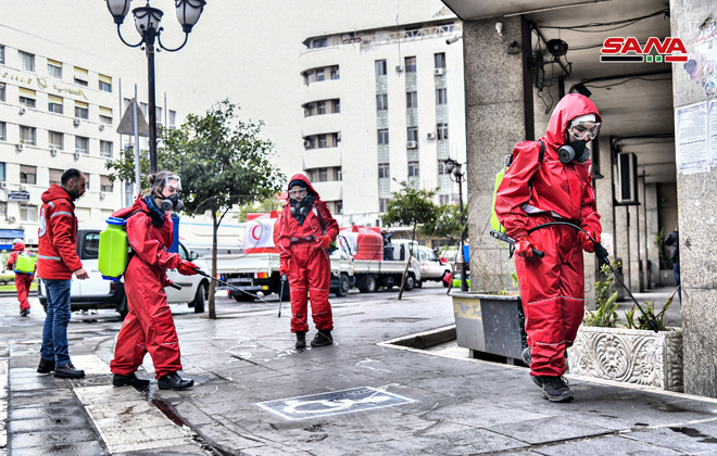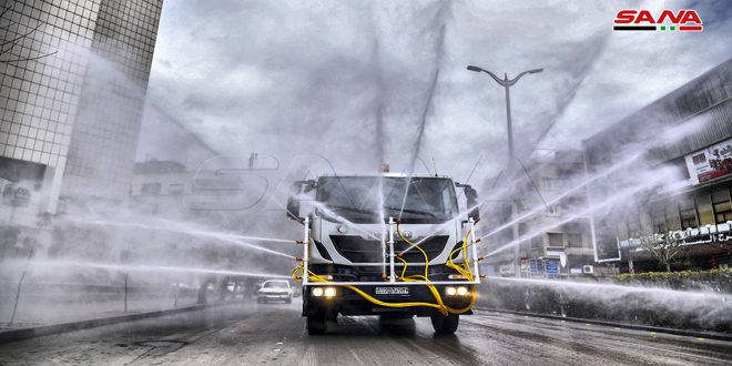 Damas-SANA/ Dans le cadre des mesures préventives prises pour lutter contre coronavirus, le gouvernorat de Damas a démarré aujourd’hui, en coopération avec le Croissant-Rouge arabe syrien, une campagne de stérilisation dans la ville.