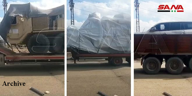 Hassaké-SANA / Dans une nouvelle transgression du droit international, les forces d’occupation américaines ont fait entrer aujourd’hui, depuis le nord de l’Irak, un nouveau convoi chargé du matériel logistique et des blindés via le poste al-Walid illégal vers l’une de leurs bases illégales dans la banlieue de Hassaké.