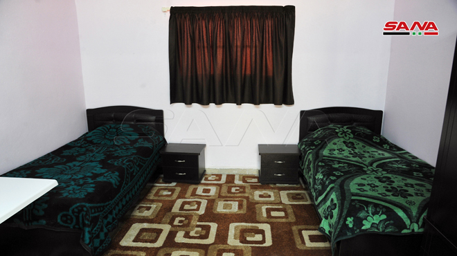Damas-SANA/ Le ministère de la Santé, en collaboration avec le gouvernorat de banlieue de Damas, a achevé l’équipement de la 5ème section des immeubles du centre de quarantaine de Dweir et qui comprend 49 chambres équipées de toutes les besoins de la résidence hôtelière, chaque chambre comprend deux personnes.