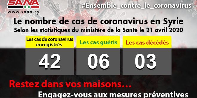 Damas-SANA / Le ministère de la Santé a indiqué que trois nouveaux cas de coronavirus avaient été enregistrés pour que le bilan de cas infectés en Syrie s’élève à 42.