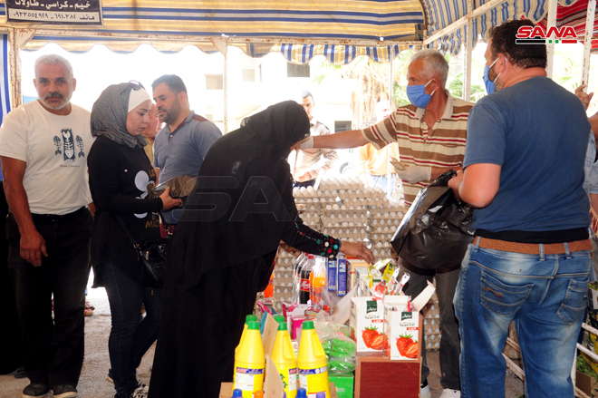 En outre, les deux ministres et le gouverneur de la banlieue de Damas se sont informés de l’état du travail dans le souk ouvert il y a deux jours dans la ville de Kiswa dans le but d’assurer les légumes et les denrées aux citoyens à des prix modérés.