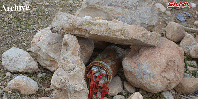 Le correspondant de SANA à Quneitra a fait noter qu’une charge, abandonnée par les réseaux terroristes, avait explosé ce matin dans le site de Tal Hamrya au sud de la localité de Hadhar dans la banlieue nord du gouvernorat, ce qui a fait deux martyrs qui étaient en route vers les terres agricoles.