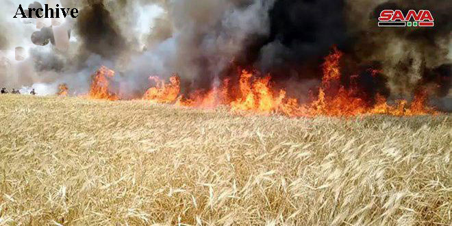 Des sources locales de la région ont fait noter au correspondant de SANA qu’un incendie s’était déclaré ce matin près d’un point de l’occupation turque au sud de Ras Ain, qui a ensuite provoqué plusieurs incendies dans de vastes zones des champs de blé et d’orge dans les villages de Manajir, Ahras, Ameriya, Tal Atach et Arat Abou Baker, situés dans la région de Ras Ain dans la banlieue nord-ouest de la ville de Hassaké.