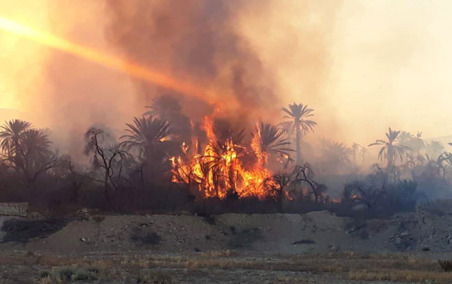 Il a fait savoir que la superficie de l’incendie atteint environ 150 hectares des vergers de l’oasis de Palmyre, dont la superficie totale atteint environ 400 hectares.