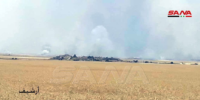 Des sources civiles de la région ont déclaré au correspondant de Sana que des groupes des forces d’occupation turques avaient mis le feu dans un certain nombre de terrains agricoles à l’ouest de Ras al-Aïn, ce qui avait ravagé plus de 350 dunoms de champs de blé et d’orge appartenant aux habitants qui s’apprêtaient à les récolter au cours des prochains jours.