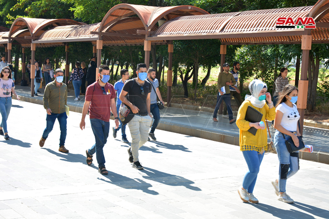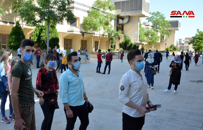 Les étudiants de l’université de Baath à Homs… engagement aux mesures préventives prises pour lutter contre le coronavirus