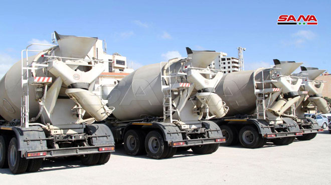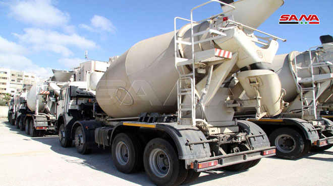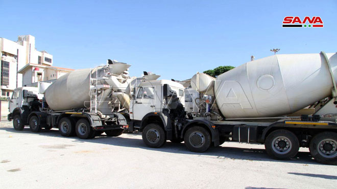 Tartous-SANA / Douze camions malaxeurs de marque russe « KAMAZ », qui font partie de la 2e partie du contrat signé entre le ministère des Travaux publics et de l’Habitat et la société russe « Stroy Expert ».