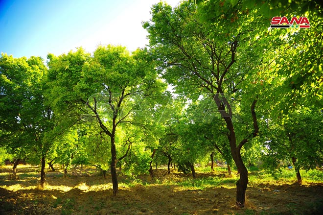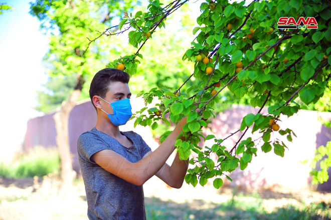 La saison de la cueillette des abricots a commencé avec le début du mois de juin dans la Ghouta orientale près de la route de l’aéroport, qui sert à la fabrication de Qamar Al-Din.