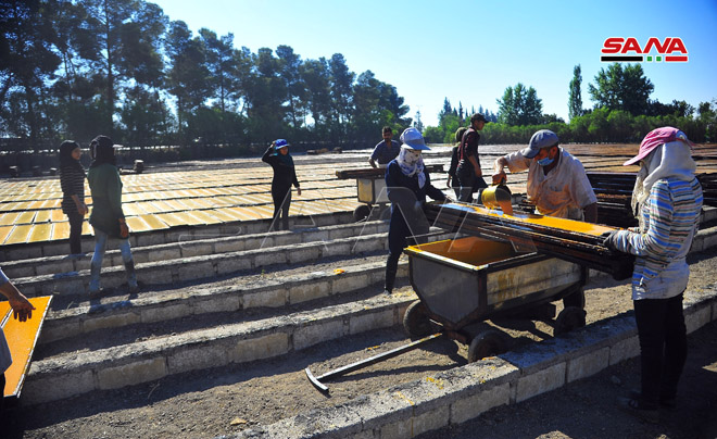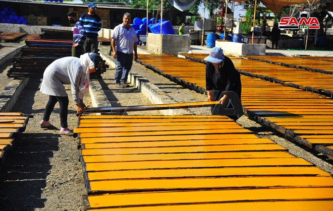 Damas-SANA / La production de Qamareddine, qui caractérise la ville de Damas et de sa banlieue depuis des centaines d’années, a débuté dans l’un des vergers de la Ghouta de Damas.