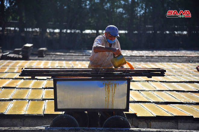 Dans une déclaration à SANA, Jawich, propriétaire d’un atelier pour la fabrication de Qamareddine, a fait noter que tout le matériel utilisé pour cette fabrication doit être en chrome qui n’a aucune réaction avec les produits alimentaires.