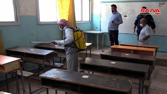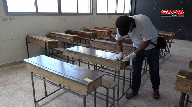 Hassaké-SANA / La direction de l’éducation à Hassaké a achevé tous les préparatifs nécessaires pour commencer les épreuves du brevet et du bac, au milieu des mesures préventives anti-coronavirus englobant tous les centres d’examens.