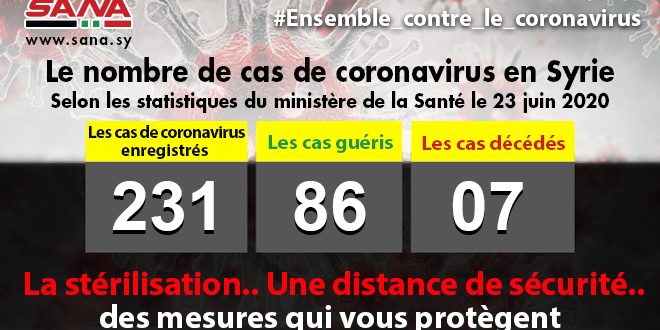 Le ministère a révélé que le bilan des cas de coronavirus enregistrés en Syrie avait atteint jusqu’à présent 231 cas, dont 86 cas guéris et 7 décès.