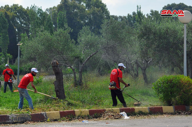 Une journée de travail volontaire et une campagne de nettoyage dans la cité sportive d’al-Assad à Lattaquié