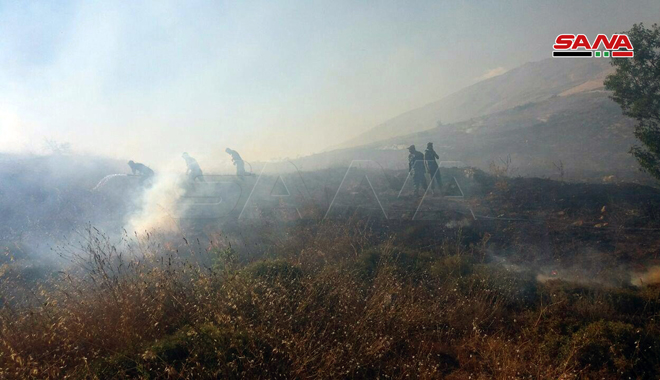 Le correspondant de « SANA » à Quneitra a indiqué qu’un énorme incendie avait été provoqué cet après-midi par les soldats de l’occupant israélien dans les terres agricoles et pastorales appartenant au village de Sehita dans le Golan occupé, et qu’il s’était ensuite étendu à une grande zone proximité de la clôture barbelée et à une partie de la zone libérée, et ce, dans une nouvelle agression visant les habitants, leurs propriétés et leurs récoltes.