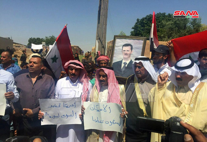 Hassaké – Sana/ La correspondante de SANA a fait noter que les habitants du village de Tartab dans la banlieue de Qamichli avaient organisé aujourd’hui des manifestations contre l’occupation américaine, dans lesquelles, ils ont appelé à la sortie des forces d’occupation de la Syrie.