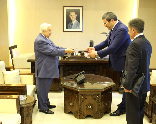 Damas-SANA/Le vice-président du Conseil des ministères, ministre des Affaires étagères et des Expatriés, Walid al-Mouallem, a reçu aujourd’hui Khotapa Bagrat Rachovic qui lui a remis une copie de ses lettres de créance comme ambassadeur de la République d’Abkhazie en Syrie.
