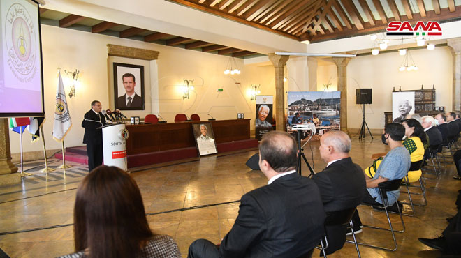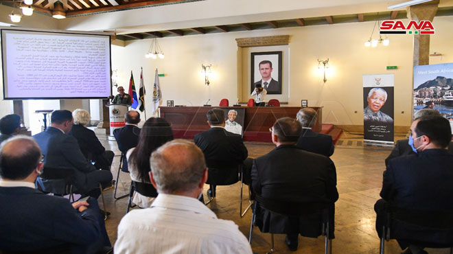 Damas-SANA / A l’occasion de la Journée de Nelson Mandela, l’ambassade d’Afrique du Sud à Damas a organisé aujourd’hui une cérémonie comprenant une conférence sur les valeurs de lutte du défunt leader, Mandela, dans la salle de Rida Saayd, à l’université de Damas.