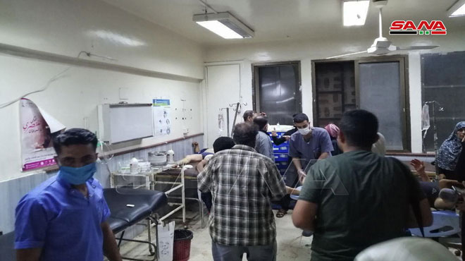 Citée par la correspondante de SANA, une source du commandement de la police du gouvernorat de Daraa a fait savoir qu’un kamikaze qui portait une charge explosive à bord d’un motocycle s’était fait exploser entre des personnes dans le quartier de Manchya à Daraa al-Balad, soulignant que l’attentat avait fait un martyr et 10 blessés parmi les civils, dont des enfants, qui avaient été hospitalisés à l’hôpital national de Daraa.