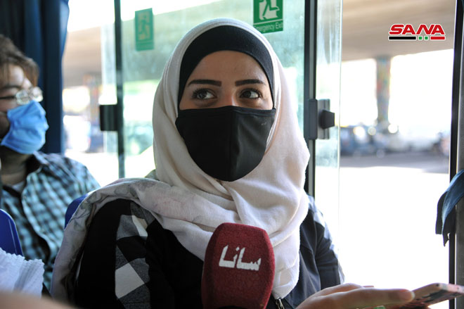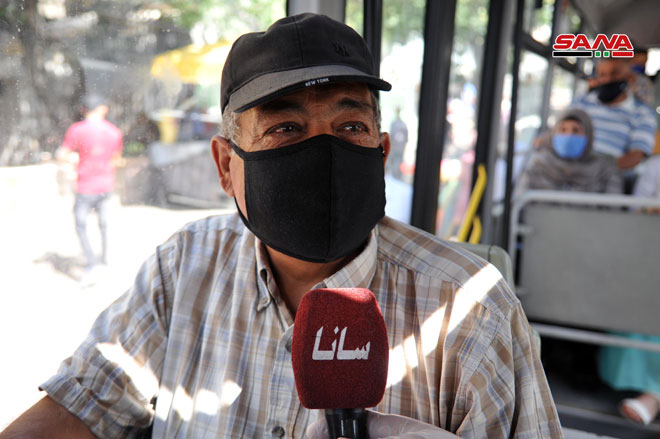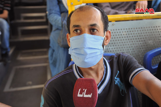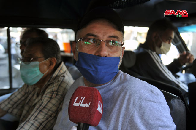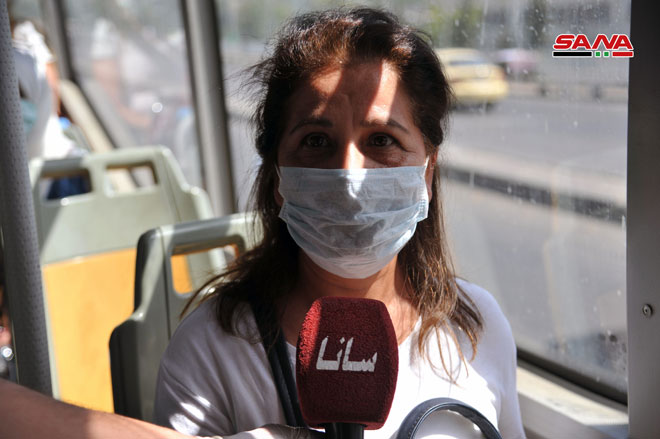 Damas – SANA/ Les transports en commun à Damas connaissent un engagement croissant par les citoyens et les conducteurs à porter des masques comme mesure de précaution pour lutter contre le coronavirus.
