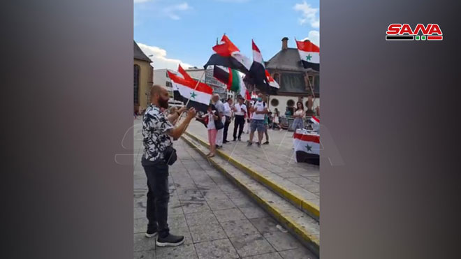 Francfort-SANA / Des associations syriennes et allemandes, avec la participation des membres de la communauté syrienne et des solidaires allemands, ont observé, aujourd’hui sur la place principale de la ville de Francfort dans l’ouest de l’Allemagne, un sit-in de solidarité avec la Syrie pour dénoncer la « Loi César ».