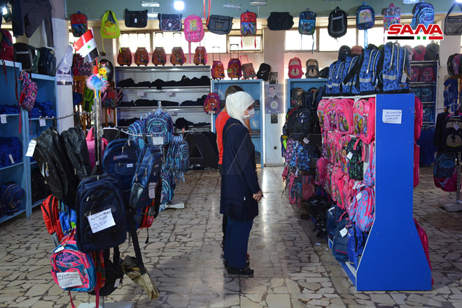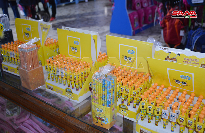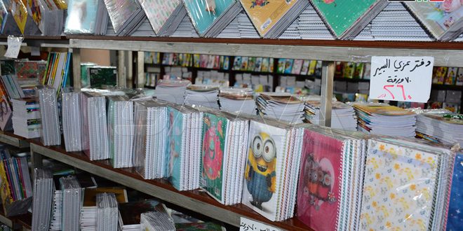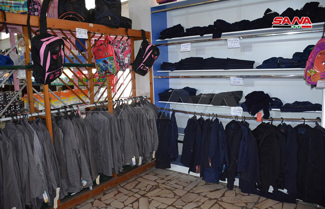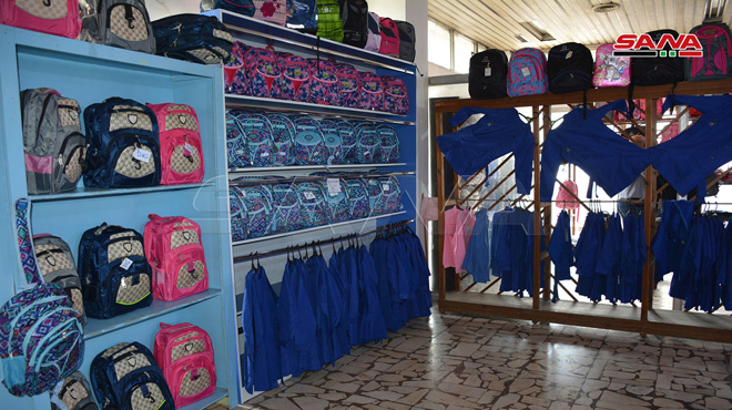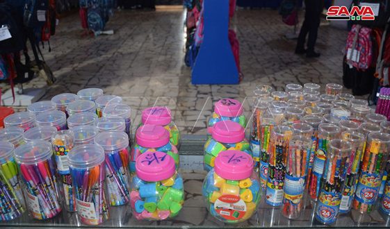 Exposition pour la papeterie et des fournitures scolaires dans la branche de la société syrienne du commerce à Lattaquié