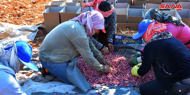 Homs-SANA / Les paysans de Homs continuent à cueillir les pistaches pour la saison actuelle, qui a commencé il y a quelques jours avec des estimations de production d’environ 870 tonnes.