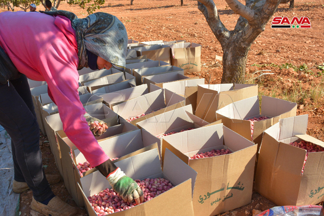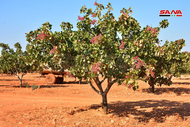 Moufid a noté qu’il avait planté des pistachiers dans sa terre, parce qu’il résiste à la sécheresse et donne une rentabilité économique, faisant savoir que le prix du kg varie entre 5000 et 6000 livres syriennes.