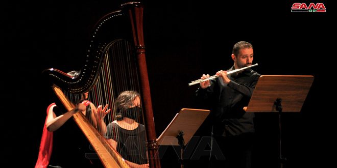 Présentation d’un duo flûte et harpe dans une soirée musicale à la Maison d’al-Assad