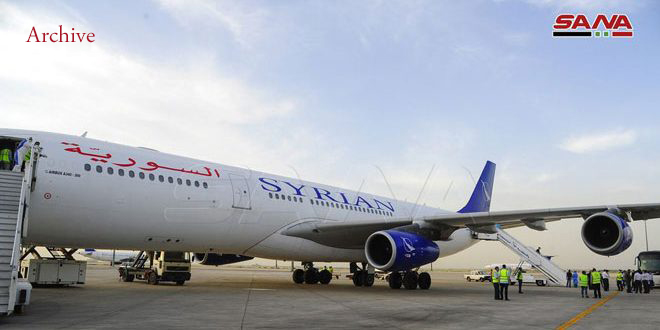 Damas-SANA / Un avion appartenant à la Compagnie syrienne d’Aviation « Syrian Air » est arrivé à l’aéroport international de Damas portant à bord 263 citoyens syriens rapatriés de Sharjah, dans le cadre des efforts du gouvernement pour rapatrier les citoyens syriens bloqués à l’étranger en raison de la pandémie de Coronavirus.