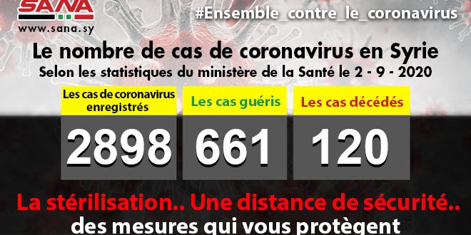 Dans un communiqué dont une copie est parvenue à SANA, le ministère a fait savoir que le bilan des cas de coronavirus enregistrés jusqu’à présent en Syrie avait atteint 2898, dont 661 cas de guérison et 120 décès.