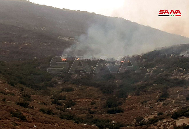 Dans une déclaration qu’il a donnée aujourd’hui au correspondant de SANA, le directeur du Centre de protection des forêts à Hama, Median Ali, a fait noter que l’incendie éclate toujours dans la partie nord et nord-ouest du lieu de l’incendie, où se trouvent des forêts à proximité du village de Chemeissah.