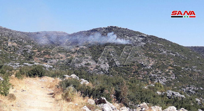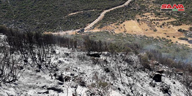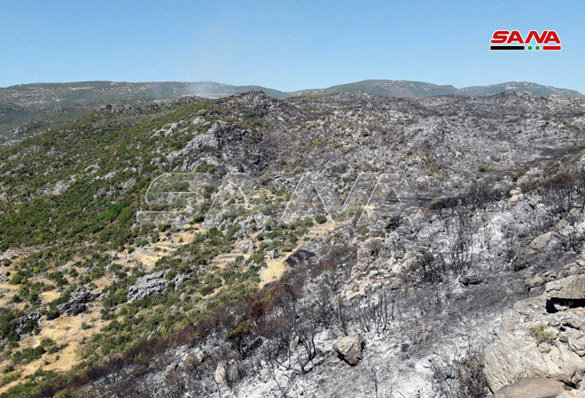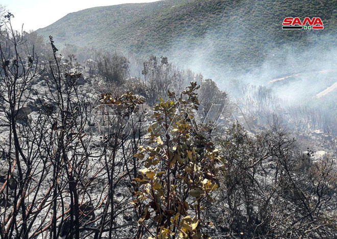 Les dégâts des incendies entre les zones de Lakbeh et Chatha dans la banlieue de Hama