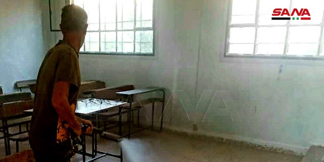 Dans une déclaration à SANA, le directeur du complexe éducatif à Palmyre, Sate’ al-Qayem a indiqué que cette campagne s’inscrit dans le cadre des mesures prises pour lutter contre le coronavirus et vise à assurer un climat pédagogique sûr dans les écoles.
