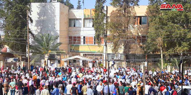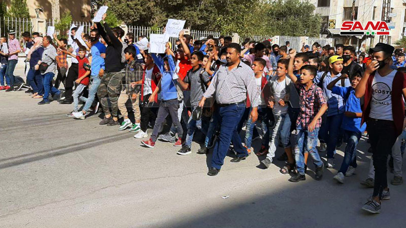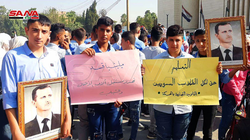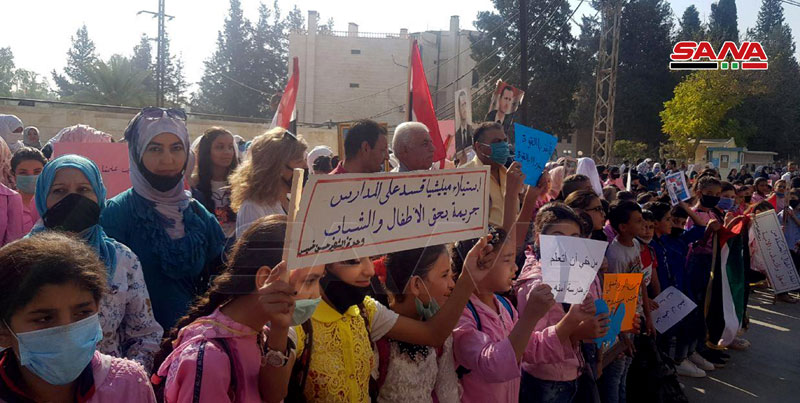 Le directeur de l’école d’Abou Tammam, Maher al-Muhachem, a déclaré à SANA que l’objectif du sit-in est de dévoiler les intentions de la milice des FDS qui veut imposer l’ignorance et l’analphabétisme en privant des milliers d’élèves de l’enseignement.