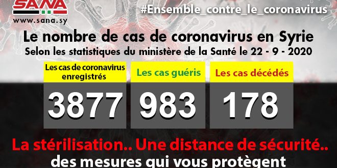Dans un communiqué dont une copie est parvenue à SANA, le ministère a fait savoir que le bilan des cas de coronavirus enregistrés jusqu’à présent en Syrie avait atteint 3877, dont 983 cas de guérison et 178 décès.