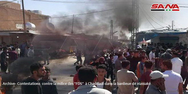 Dans des déclarations à SANA, des sources locales ont indiqué qu’une attaque aux mitrailleuses avait été menée par des personnes non-identifiées contre un rassemblement des hommes armés de la milice des «FDS » dans le camp de Hol, contrôlé par la milice dans la banlieue est de Hassaké et avait fait un tué et des blessés parmi les éléments de la milice.