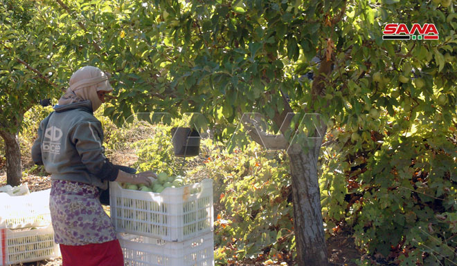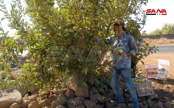Les agriculteurs de pommes cueillent leurs récoltes
