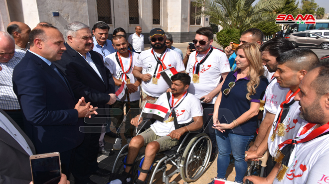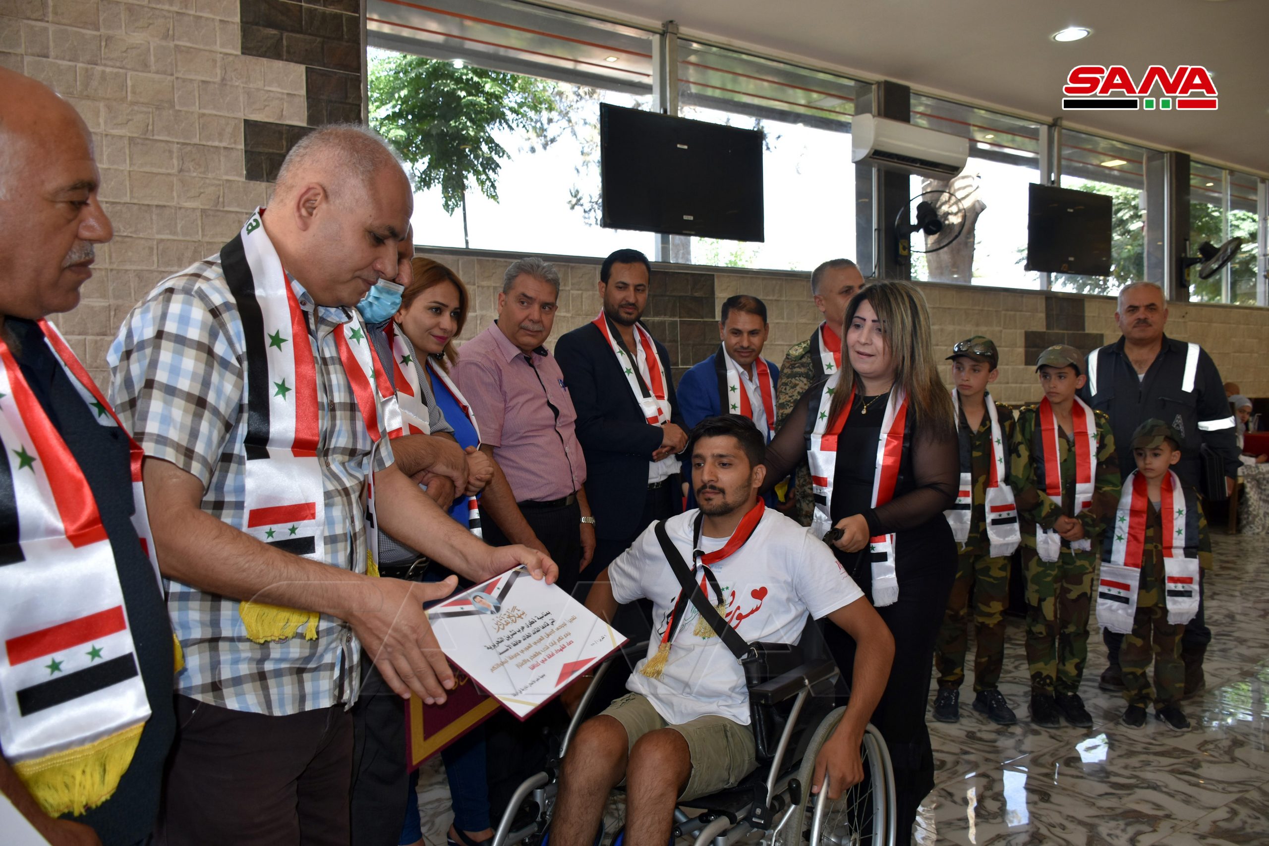 Une marche en chaises roulantes de certains blessés de l’armée depuis d’Alep vers Hama à l’occasion de l’anniversaire de la guerre de novembre