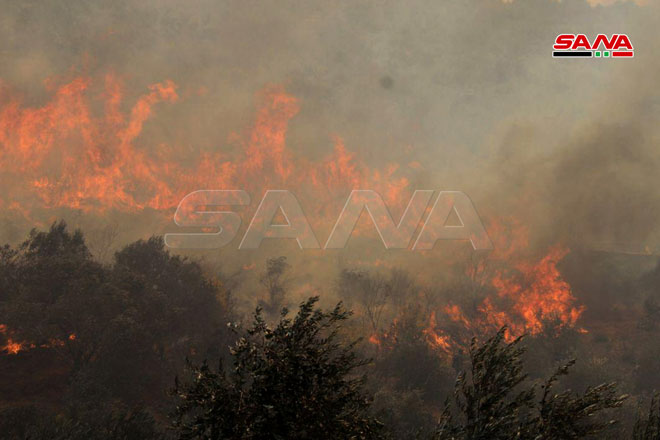 Tartous-SANA/ Les incendies qui se sont déclarés dans plusieurs zones dans la banlieue de Tartous ont endommagé de vastes superficies des terres agricoles et des forêts en dépit des efforts déployés par les sapeurs-pompiers et les éléments du département des forêts de la direction de l’agriculture de Tartous, en soutien des habitants et de l’armée arabe syrienne pour maîtriser et éteindre ces incendies.