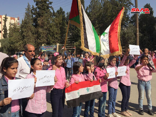 Qamichli- SANA / Un sit-in de protestation a été observé aujourd’hui dans la ville de Qamichli pour le personnel éducatif et les étudiants devant le complexe pédagogique dans la ville pour condamner la saisie et la fermeture par la milice des « FDS », soutenue par les forces d’occupation américaines, des écoles.