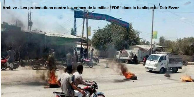 Raqqa et Deir Ezzor – SANA/ La milice ‘’FDS’’ liée à l’occupation américaine a kidnappé un certain nombre de civils dans les deux banlieues de Raqqa et Deir Ezzor, poursuivant ainsi ses actes criminels et ses mesures répressives contre les habitants dans les zones de sa propagation dans la zone syrienne de Jazira.