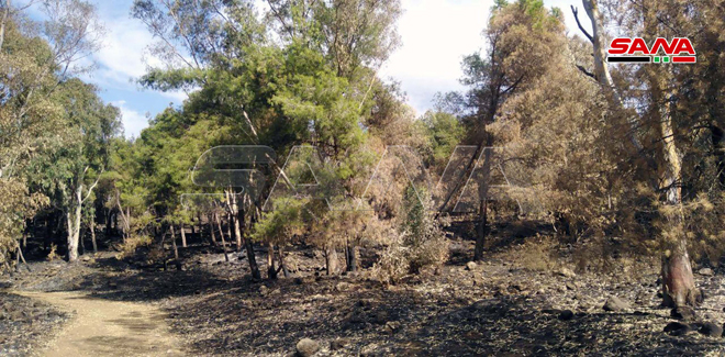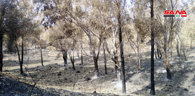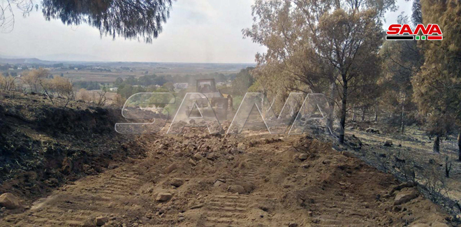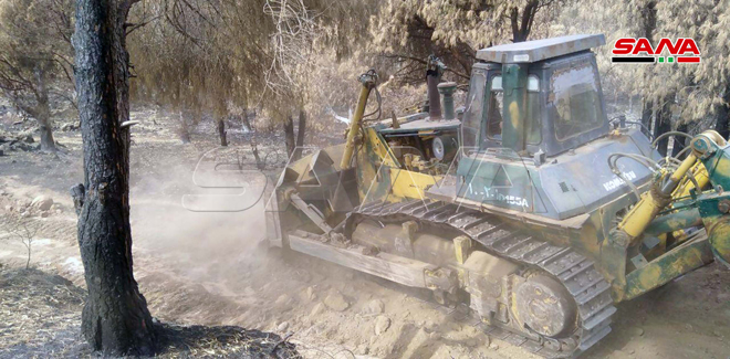 Les équipes des sapeurs-pompiers maîtrisent les incendies qui ont éclaté dans la localité de Sawda dans la banlieue de Tartous