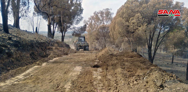 La Direction de l’agriculture à Homs commence la construction de routes agricoles dans la forêt de Borj al-Maksour dans la banlieue de TalKalakh.
