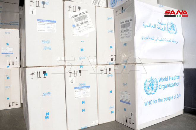 Damas-SANA / Une cargaison d’aide médicale, octroyée par l’Organisation mondiale de la Santé (OMS), est arrivée aujourd’hui à l’aéroport international de Damas, avec à bord des équipements de protection individuelle (EPI) pour le personnel médical, des médicaments et des équipements médicaux dans le but de consolider la réponse des établissements de santé dans la lutte anti-coronavirus.