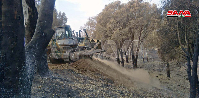 Homs –SANA / La direction de l’Agriculture à Homs a commencé la réhabilitation des chemins dans la forêt de Borj al-Maksour dans la campagne de Talkalakh, endommagée le 10 octobre en cours par les incendies.