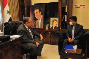 Damas-SANA/ Le ministre de l’Education, Darem Tabaa, a passé en revue avec le directeur régional de l’Organisation mondiale de la Santé « OMS » pour la Méditerranée orientale, Dr Ahmed Al-Mandhari, le représentant de l’OMS en Syrie, Dr Akjemal Maktumova, et la délégation qui les accompagne, les mesures de précaution suivies dans les écoles syriennes pour limiter la propagation de la pandémie de Coronavirus et les moyens de renforcer la coopération entre les deux parties.