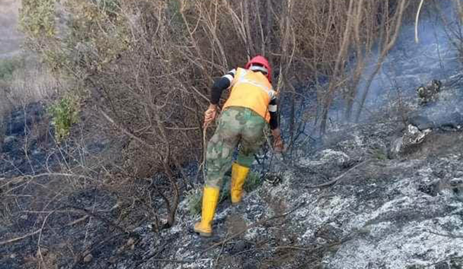 Homs-SANA / Les sapeurs-pompiers de Homs ont éteint aujourd’hui un incendie qui avait éclaté dans des oliviers et des herbes dans la banlieue de Talkalakh.