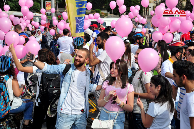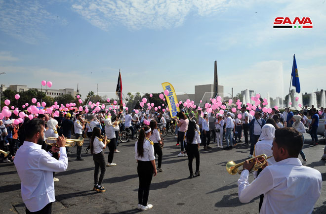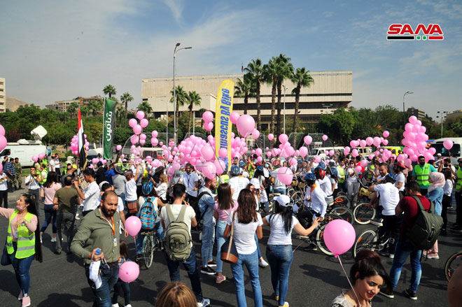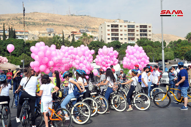 Une course de vélo à la clôture des activités du mois mondial de la sensibilisation au cancer du sein à Homs