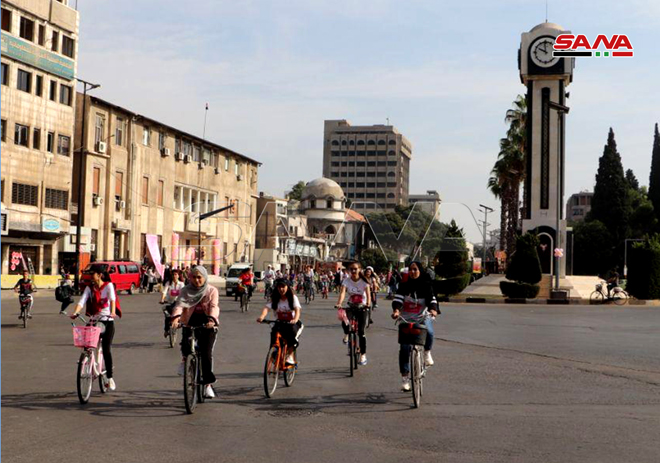 Une course de vélo à la clôture des activités du mois mondial de la sensibilisation au cancer du sein à Homs