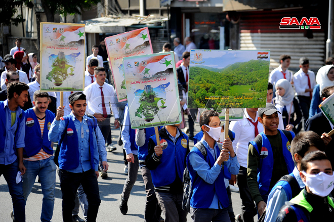 Marche et culture d’arbres à Damas à l’occasion de la journée nationale de l’environnement
